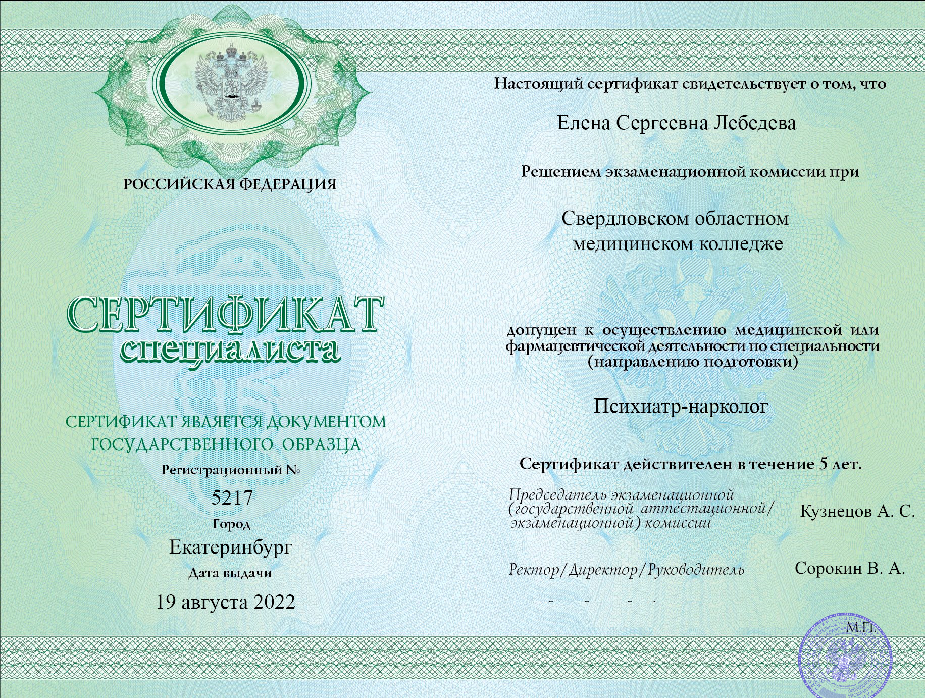 Елена Сергеевна Лебедева врач нарколог клиники доктора Стукаловой в Лазаревском